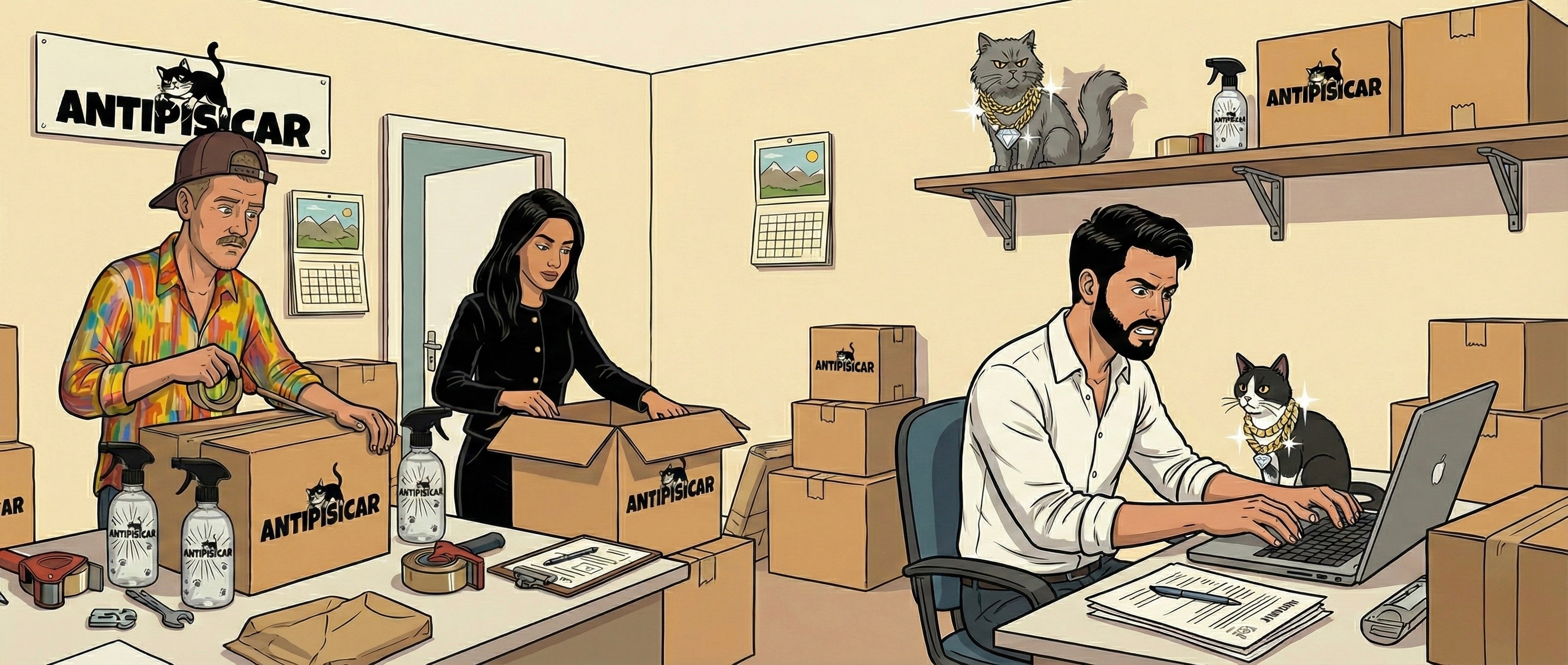 Echipa executivă AntiPisicar™, sub supravegherea strictă a reprezentantelor Tratatului.